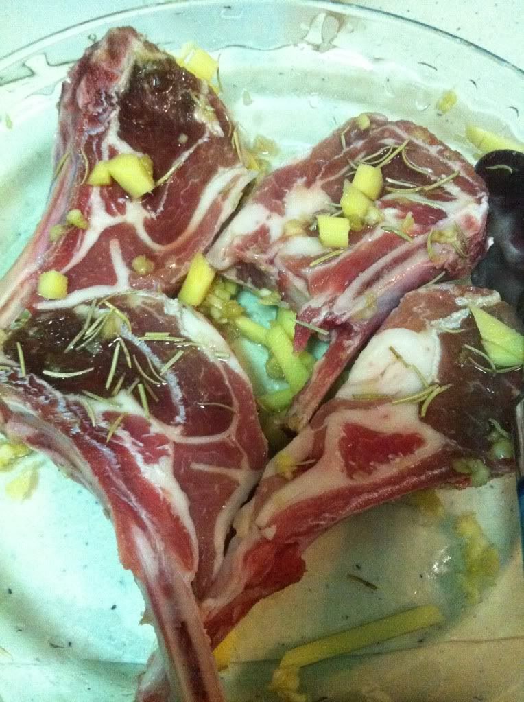首先用薑,蒜,鹽,紹酒同ROSEMARY 香草醃二小時左右